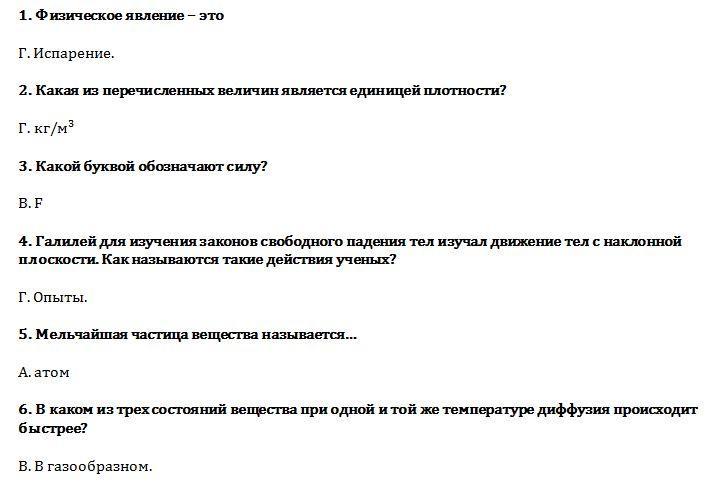 6. В каком из трех состояний вещества при одной и той же температуре диффузия происходит быстрее?