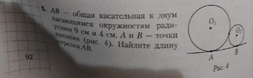 Проведём О₂Н⊥АО₁ , АН=4 , О₁Н=9-4=5 , О₁О₂=9+4=13