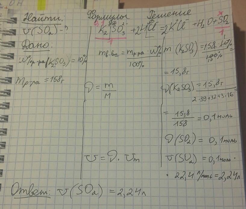 ПОЖАЛУЙСТА ОЧЕНЬ СРОЧНО НУЖНО!!!!!!!!!!!!!!! Объем(н.у)сернистого газа, который выделяется при взаимодействии 158 г 10% раствора сульфита калия с соляной кислотой