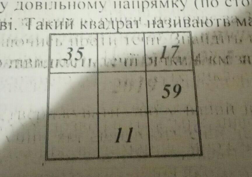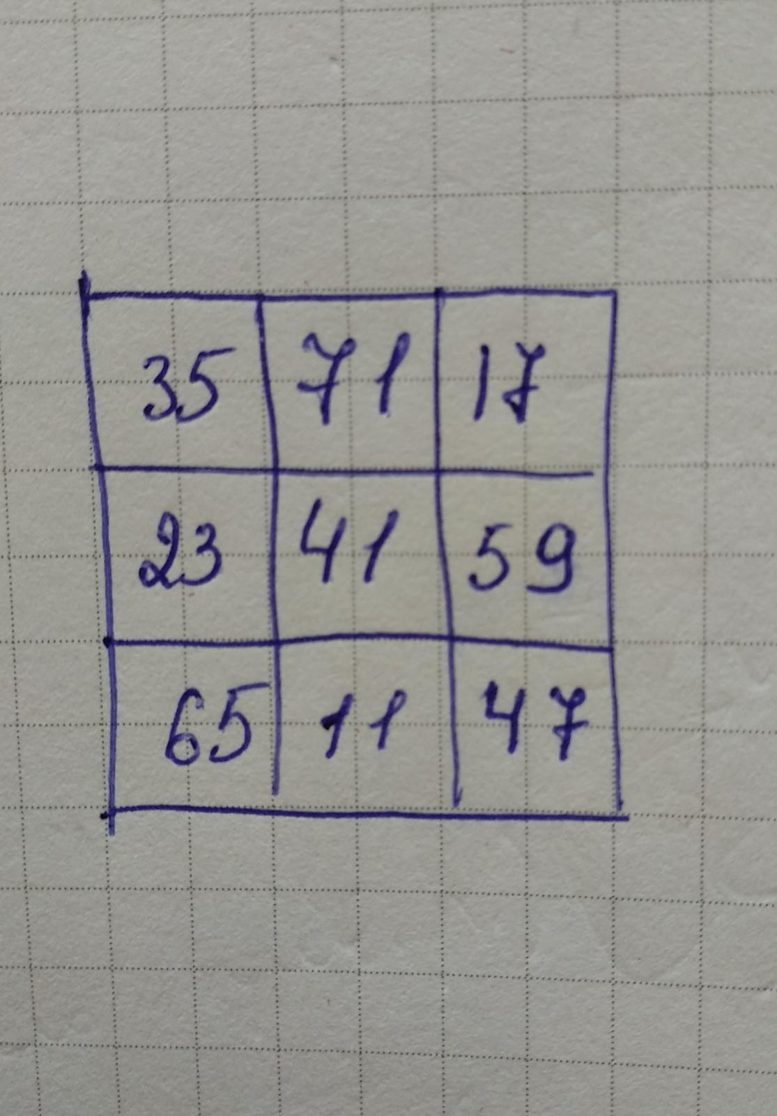 впишіть у вільні клітинки таблиці 3×3 числа 23,41,47,65,71 так,щоб суми чусел були однакові?