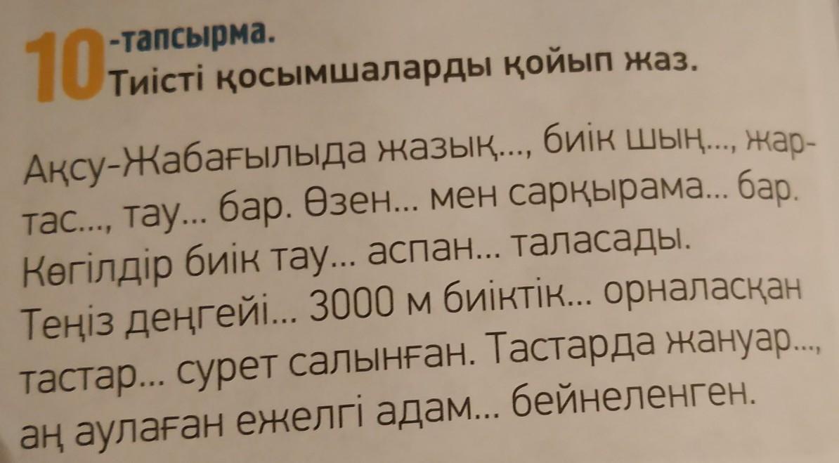 Ответ: жазықтар, шыңдар, жартастар, таулар, өзендер,сарқырамалар, таулар, аспанға, деңгейінен, биіктікте, тастарда, жануарлардың, адамдар