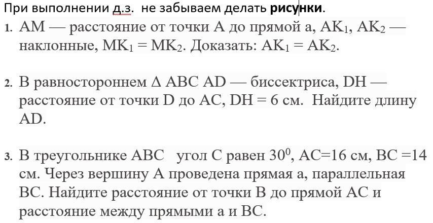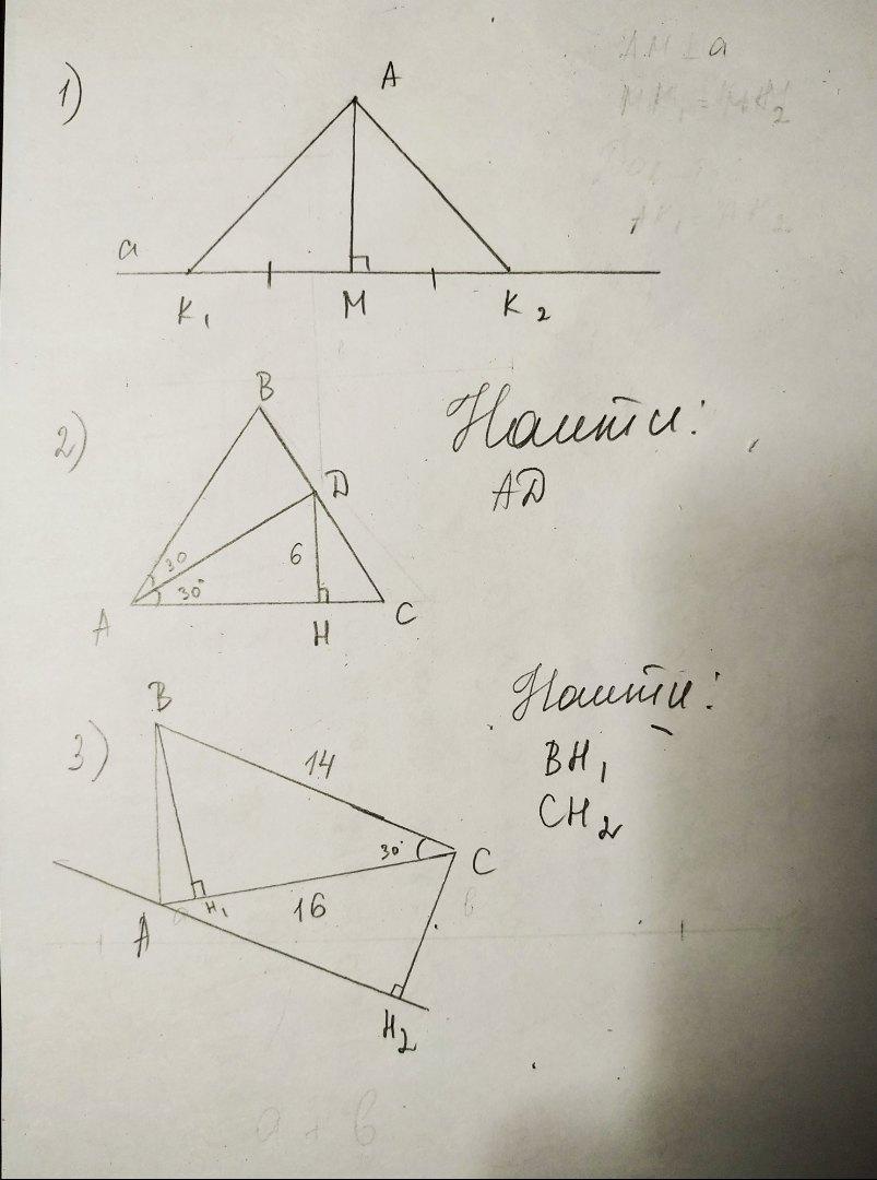 1) Так как ΔАВС-равносторонний, то ∠А=60°. Значит ∠DAH=30°(АD-биссектриса)