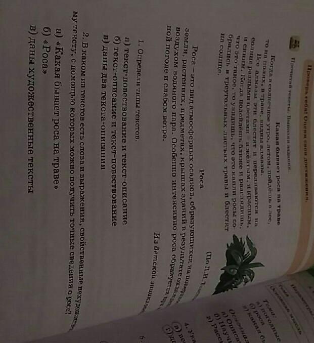 ("Какая бывает роса на траве" - текст - повествование, "Роса" - текст -описание)
