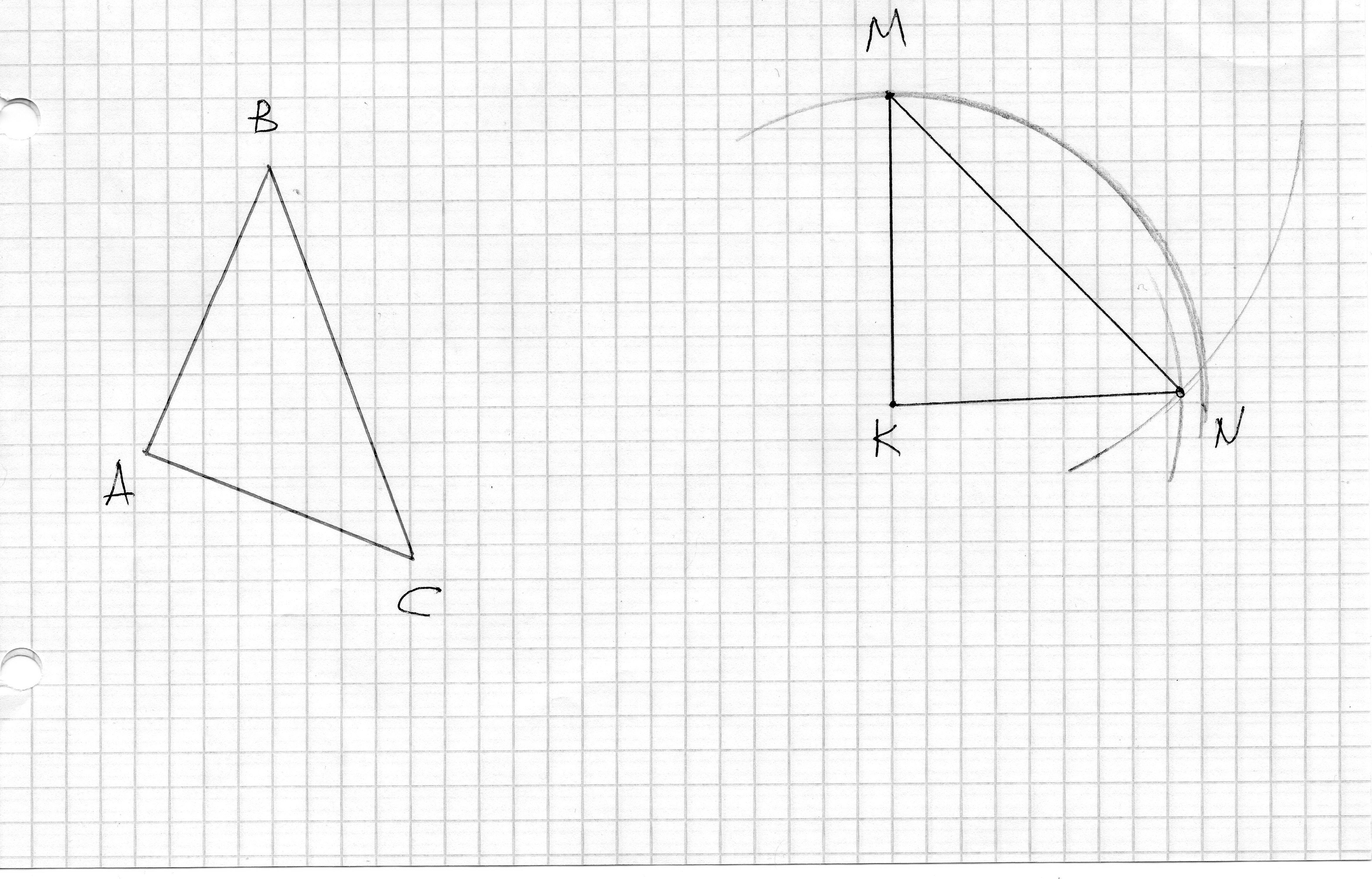 Проще всего построить треугольник равный данному при помощи циркуля.