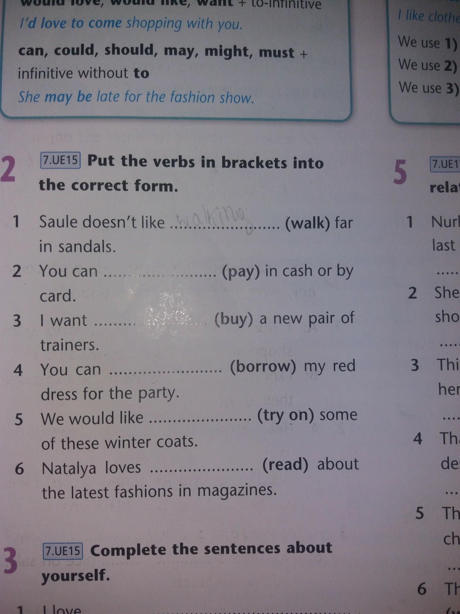 5) to try on