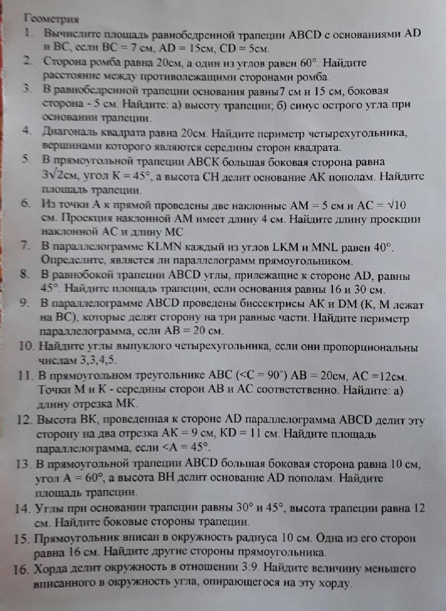 Решите все задачи на фотографии пожалуйста если можно с рисунками