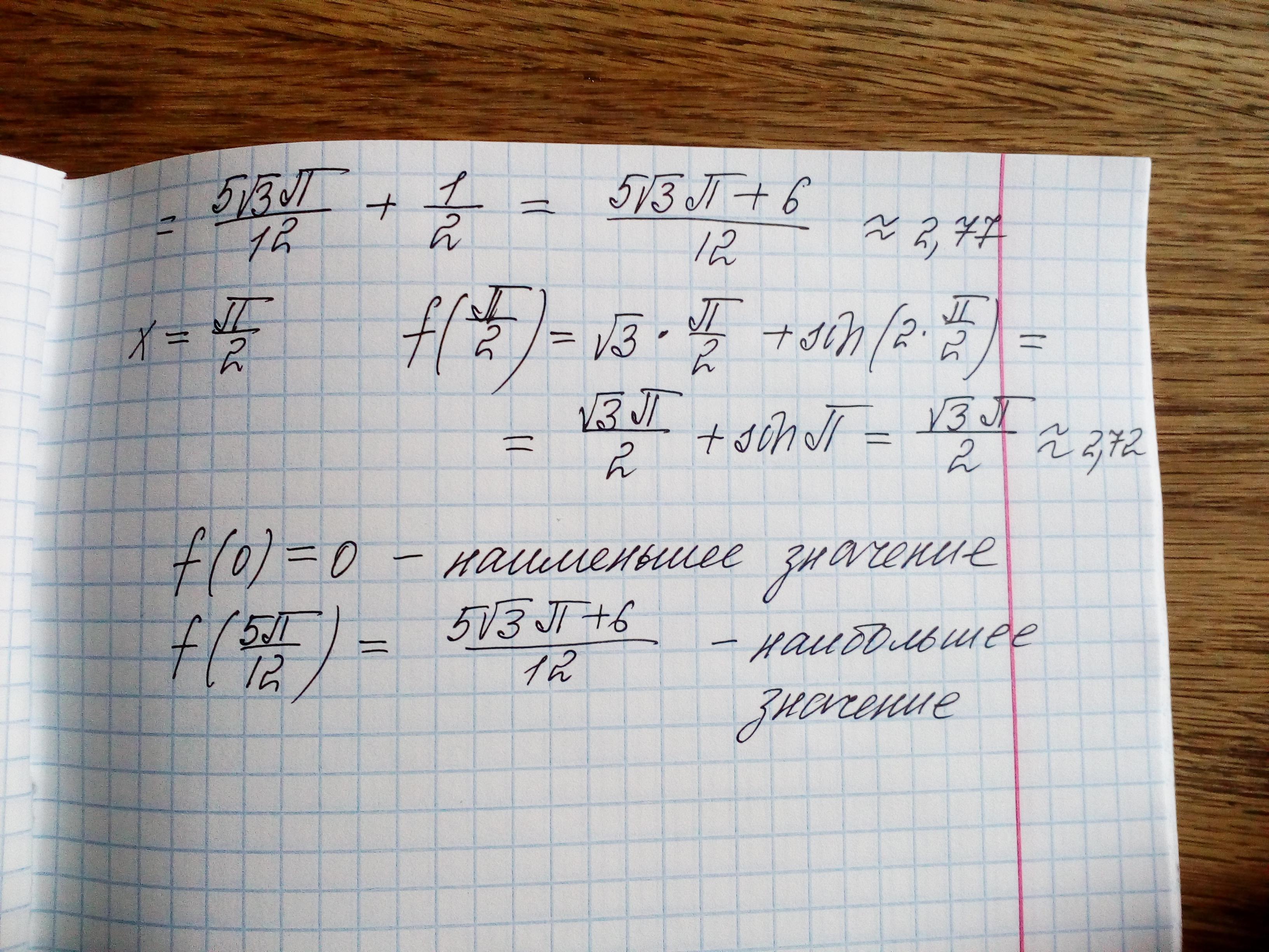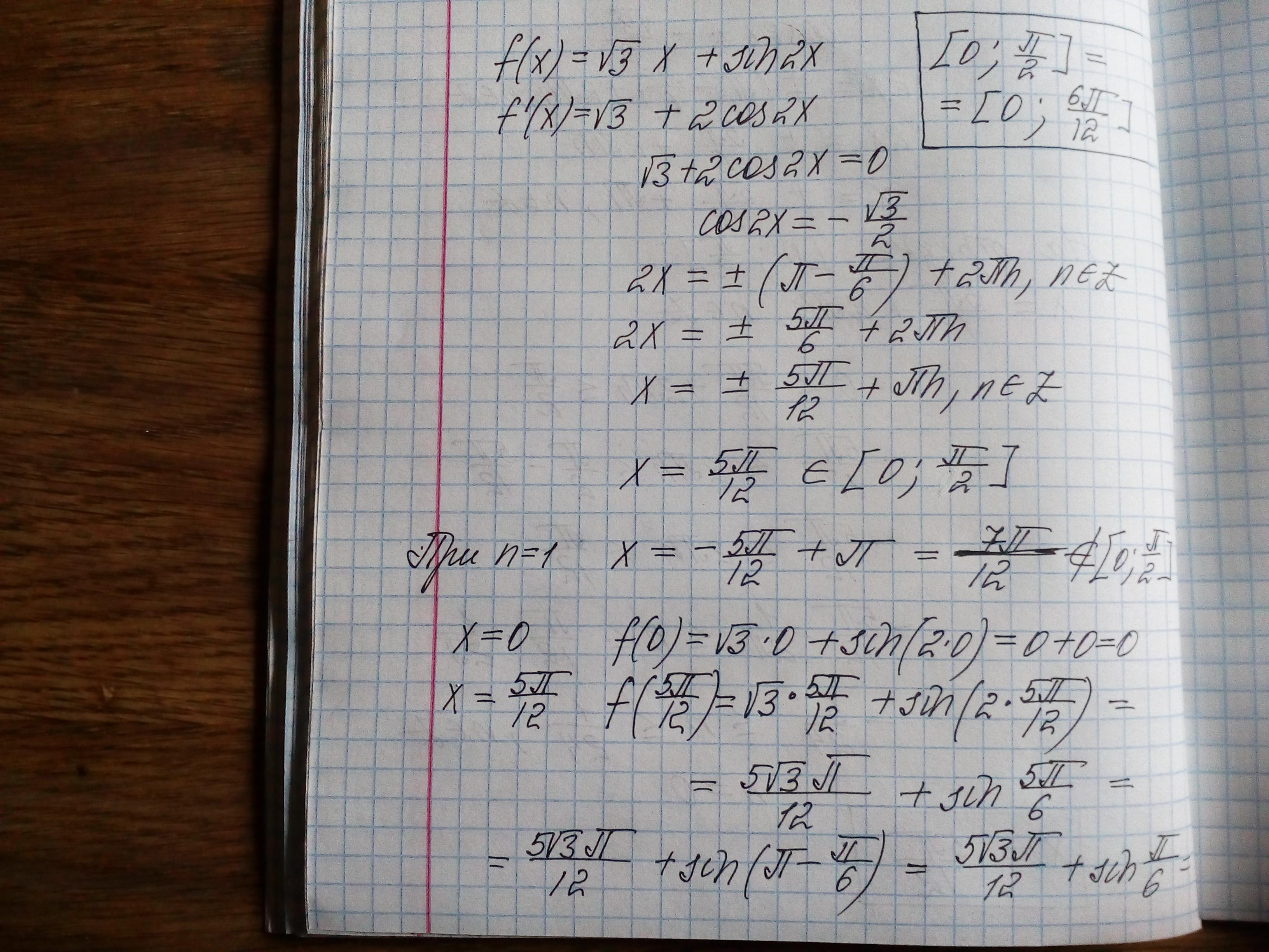 Найдите наибольшее и наименьшее значение функции f(x)=√3х+sin2x на отрезке [0;Пи/2].Только число 3 под корнем,х-отдельно.