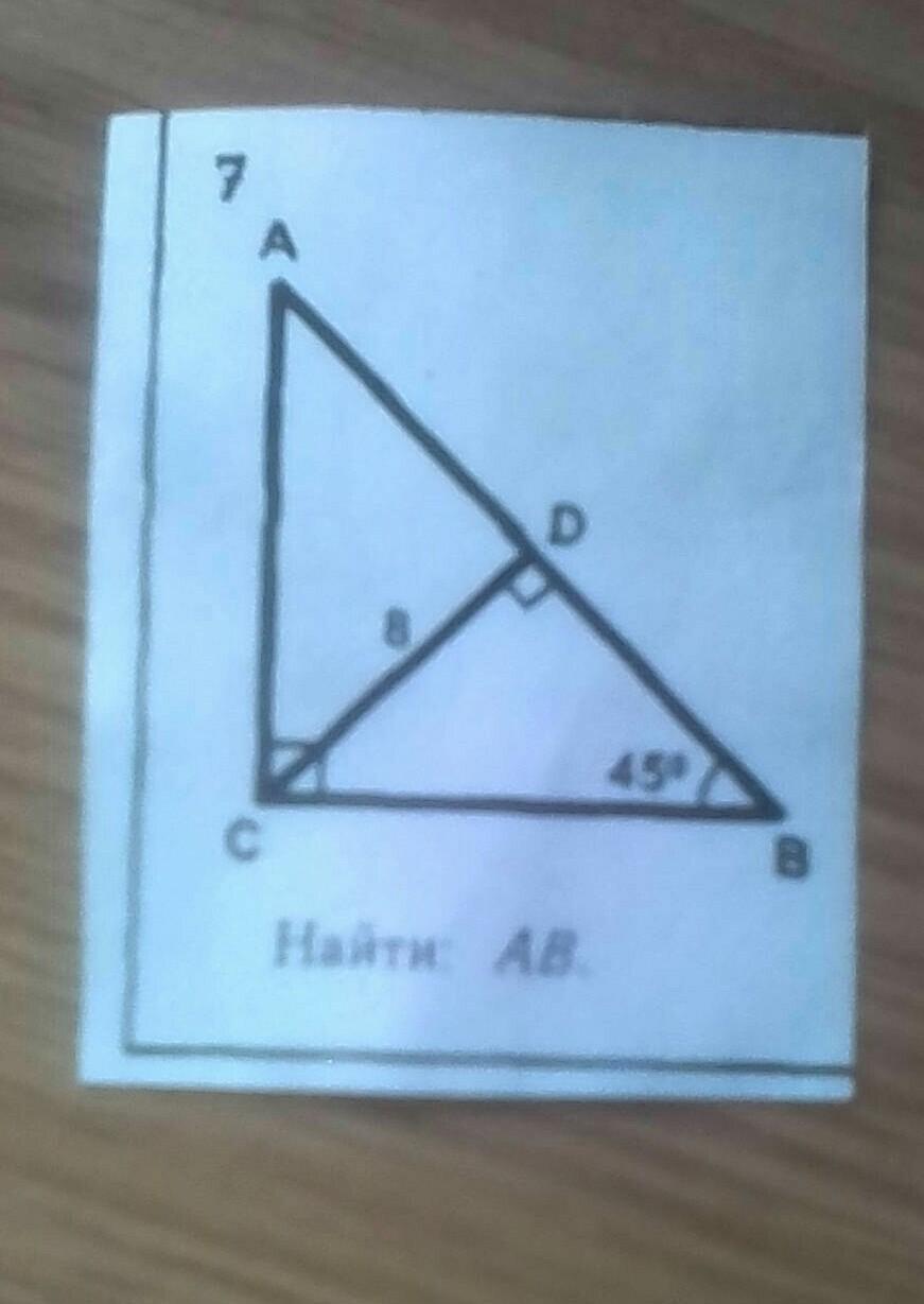 Решение:Высота СD образовала ΔСDВ,где угол D=90°,угол В=45°(по
