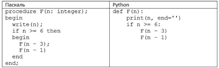 Что выведет программа при вызове F(8)? В ответе запишите последовательность выведенных цифр слитно (без пробелов)