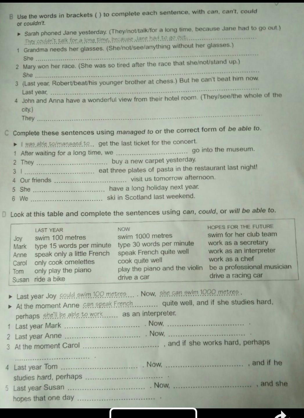 5. Last year Susan could ride a bike. Now she can drive a car, and she hopes that one day she will be able to drive a racing car.