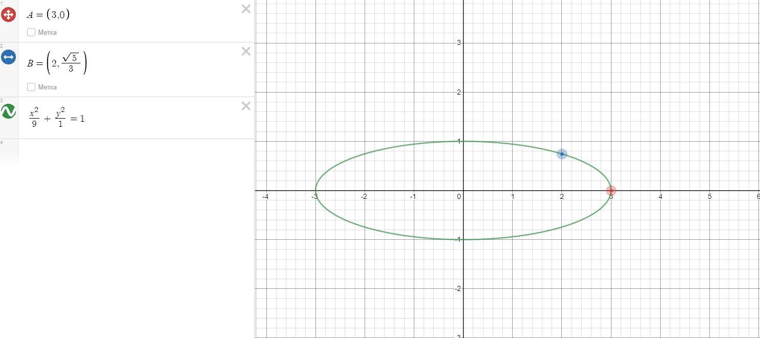 координаты точек должны удовлетворять каноническому уравнению эллипса: