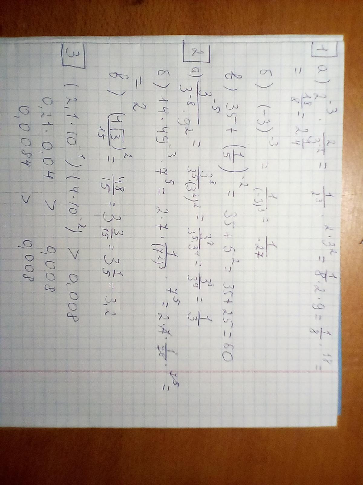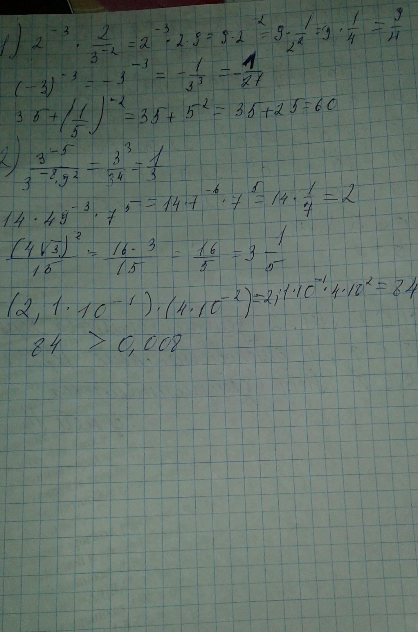 Ответ:если показатель (-) то нужно перевернуть число если это дробь к примеру 1/2-² то будет просто 2² и наоборот