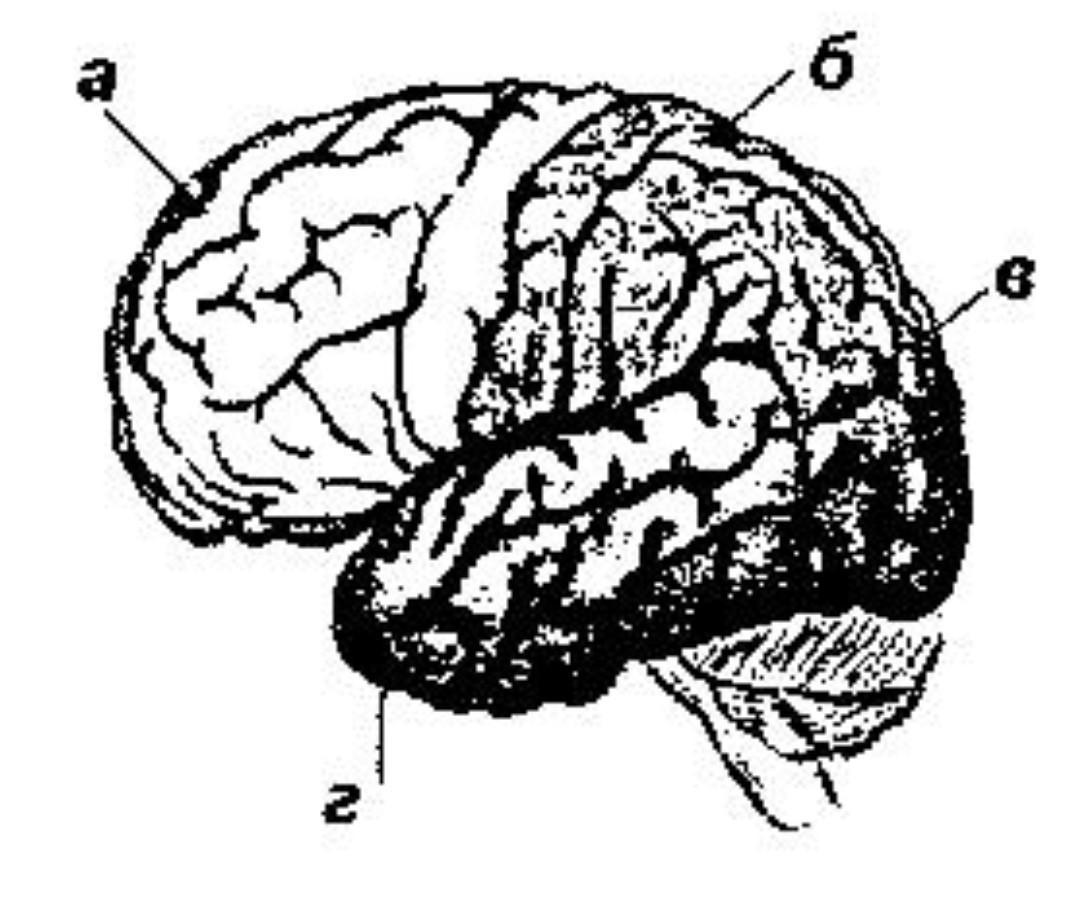 Какой буквой на рисунке обозначена доля коры головного мозга, регулирующая мыслительную деятельность:
