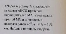 Здесь треугольник МАС - прямоугольный, равнобедренный (углы по 45 гр), значит МА=AC, a в свою очередь, AC=BD (диагонали АВСD)