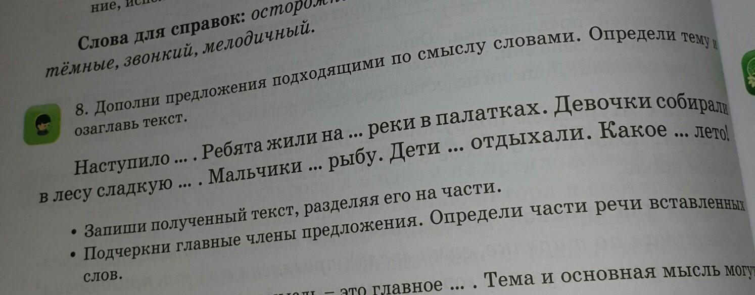 Девочки собирали в лесу сладкую землянику. Мальчики ловили рыбу. (Вторая часть закончилась; говорится о том , что делали ребята)