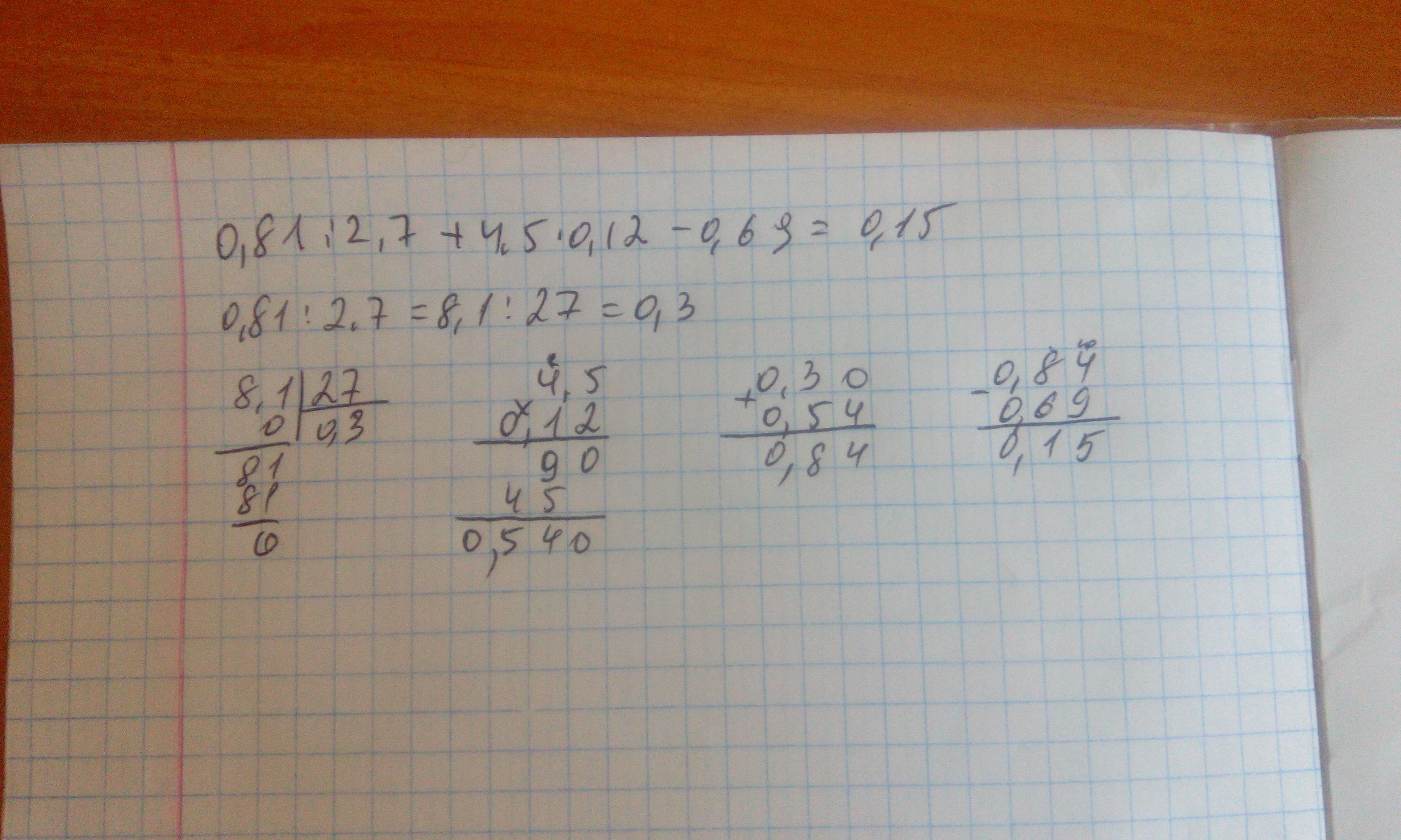 0.81 ÷ 2,7 + 4.5 × 0.12 - 0.69 = 0.15