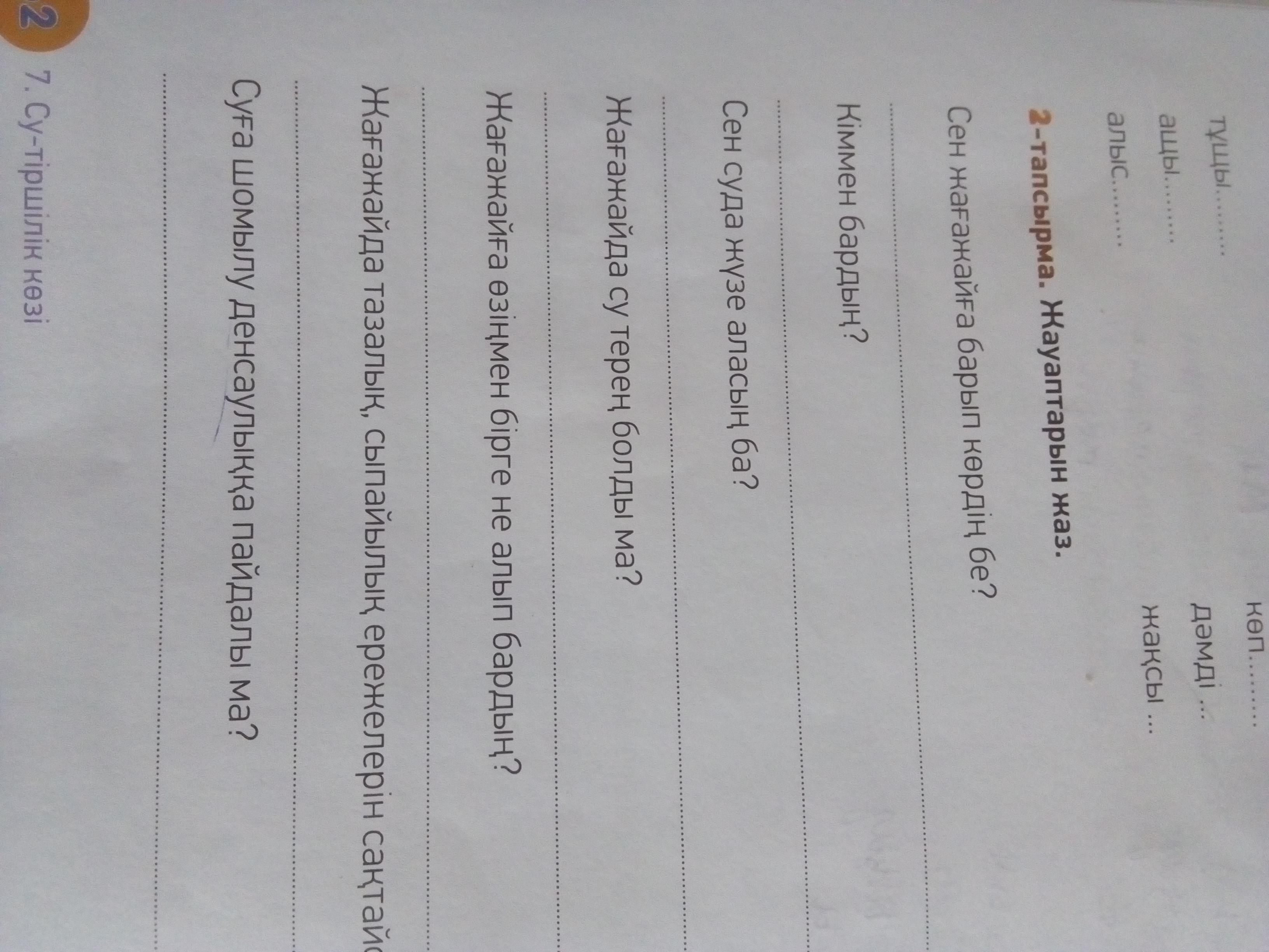 С кем ты ходил на пляж? Если ходил напиши ,, Жағажайға *перечисляй тех с кем ты ходил на пляж* мен бардым