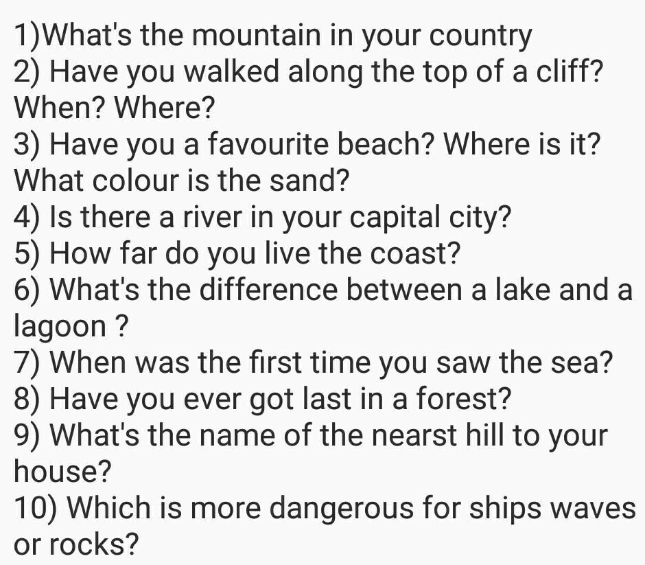 9) The nearest hill to my home is ... (напишите название холма/горы, ближайшего к вашему дому)