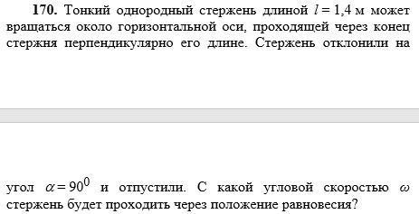 ω=√(3*g/L)=√(3*10/1.4)=4.63 рад/с
