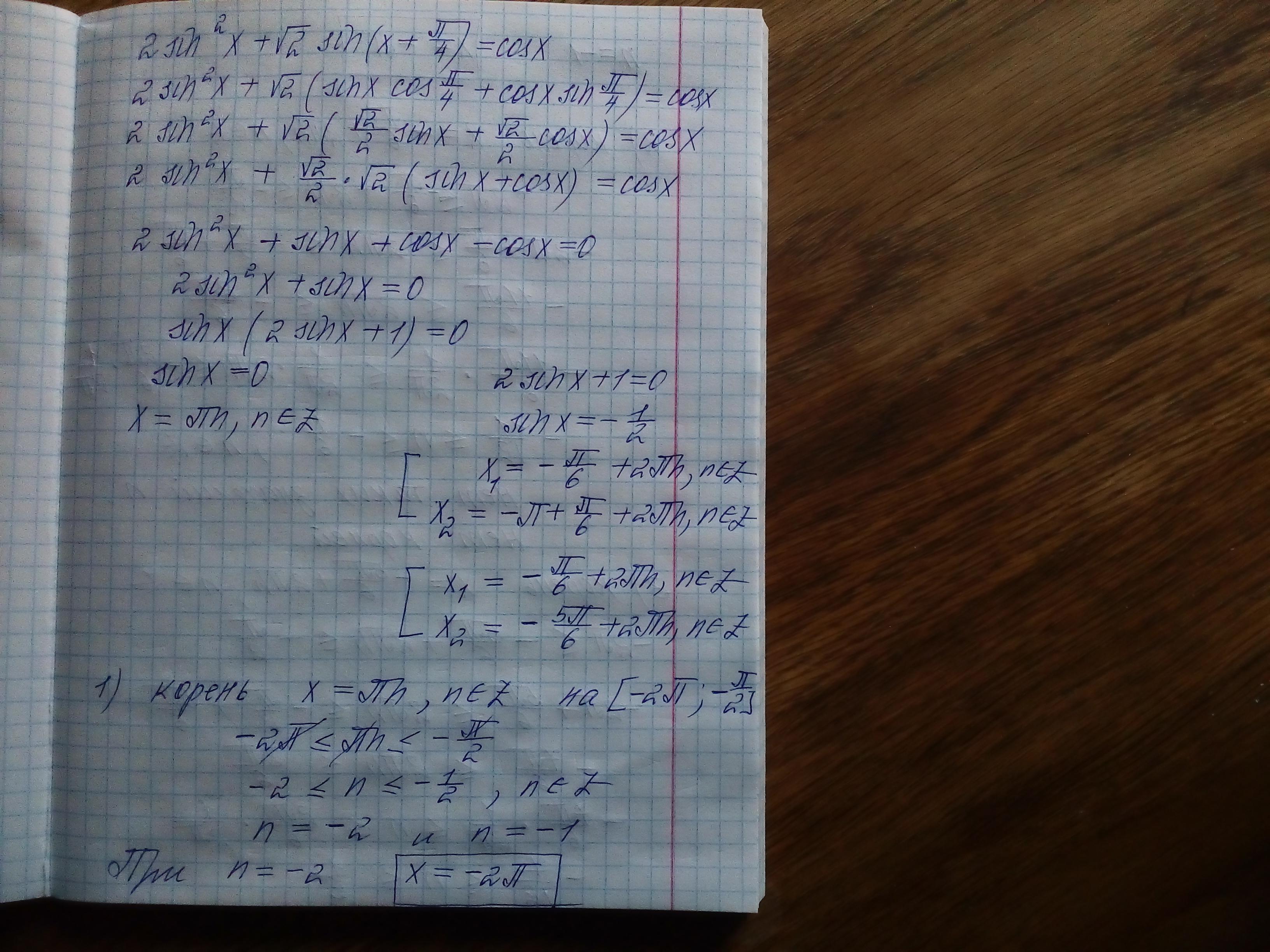 отобрать корни, принадлежащие отрезку [-2PI; -pi/2]