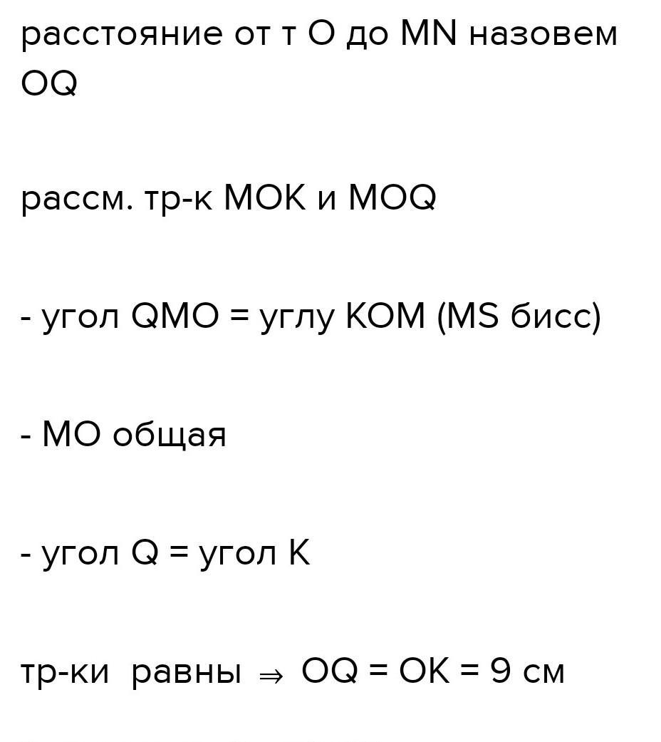 В остроугольном треугольнике АВС биссектриса угла А пересекает высоту ВТ в точке О. Причем ОТ равна 14 см. Найдите расстояние от прямой АВ до точки О. Найдите АО, если в треугольнике АВС ∠А=60˚