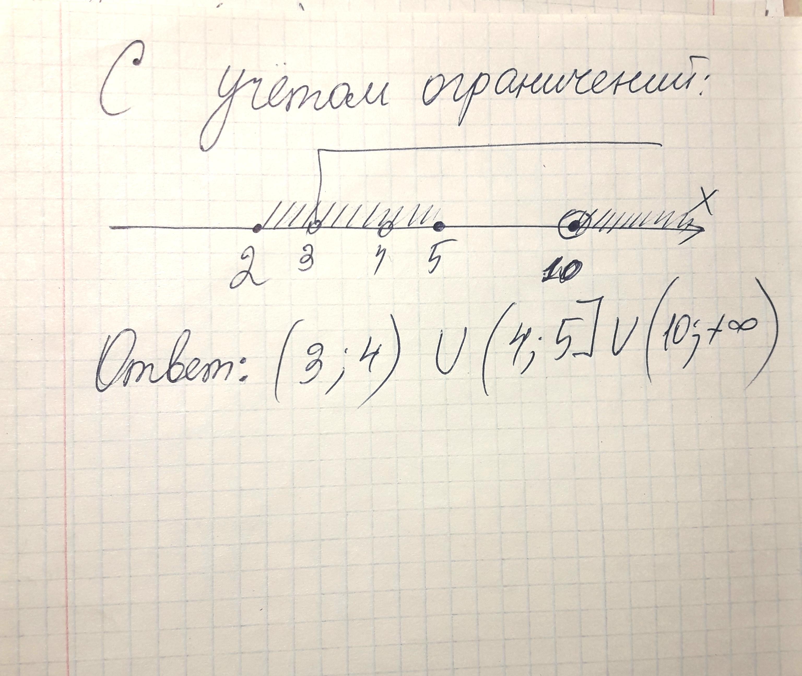 не хочу расстраивать, но ответ: (3;4)^(4;5]∧(10;+∞)