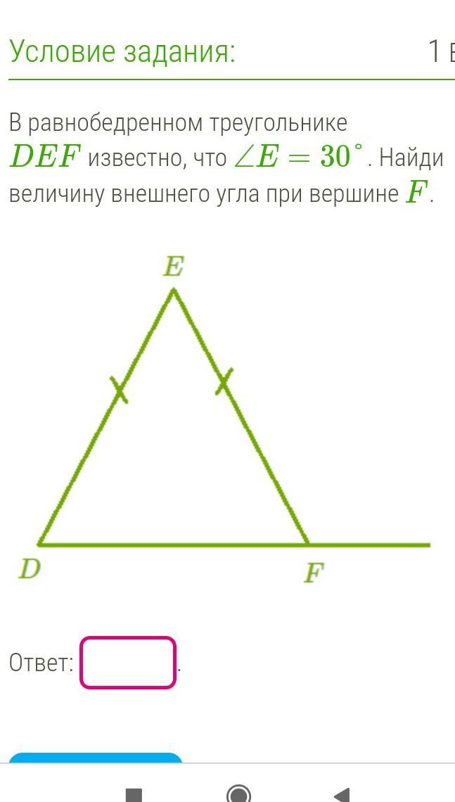 Угол EDF= углу EFD=(180-30):2=150:2=75