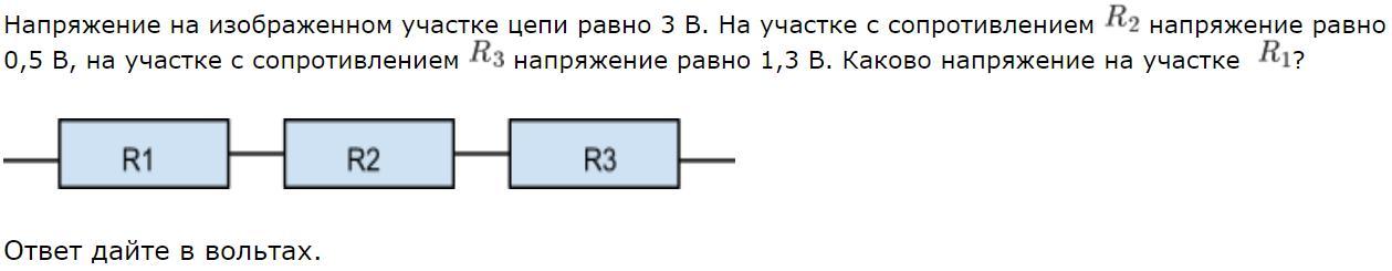Отсюда U₁=U-U₂-U₃=3В-0,5В-1,3В=1,2В
