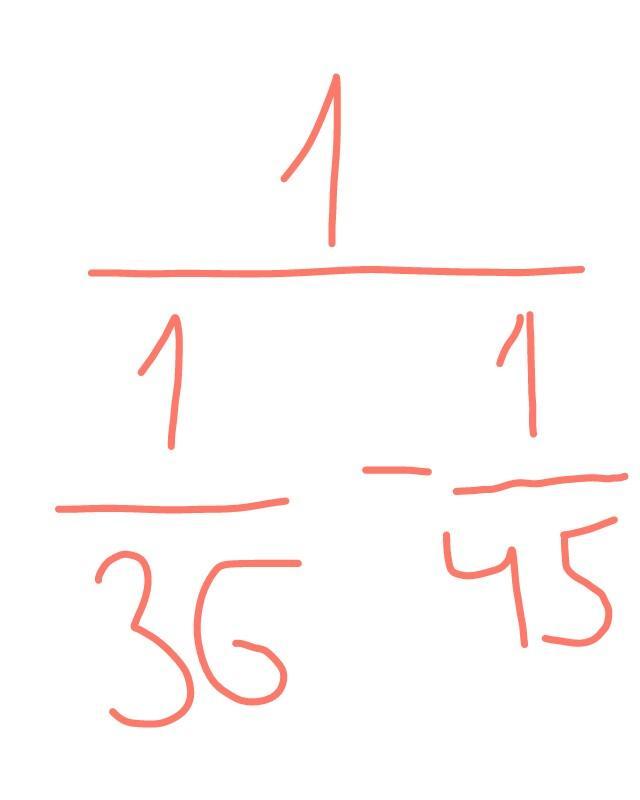 1 действие: сначала приводим к общему знаменателю 1/36-1/45 = 1/36 (умножим и числитель и знаменатель на 5) - 1/45 (умножим и числитель и знаменатель на 4) = 5/180 - 4/180 = (5-4)/180 = 1/180.