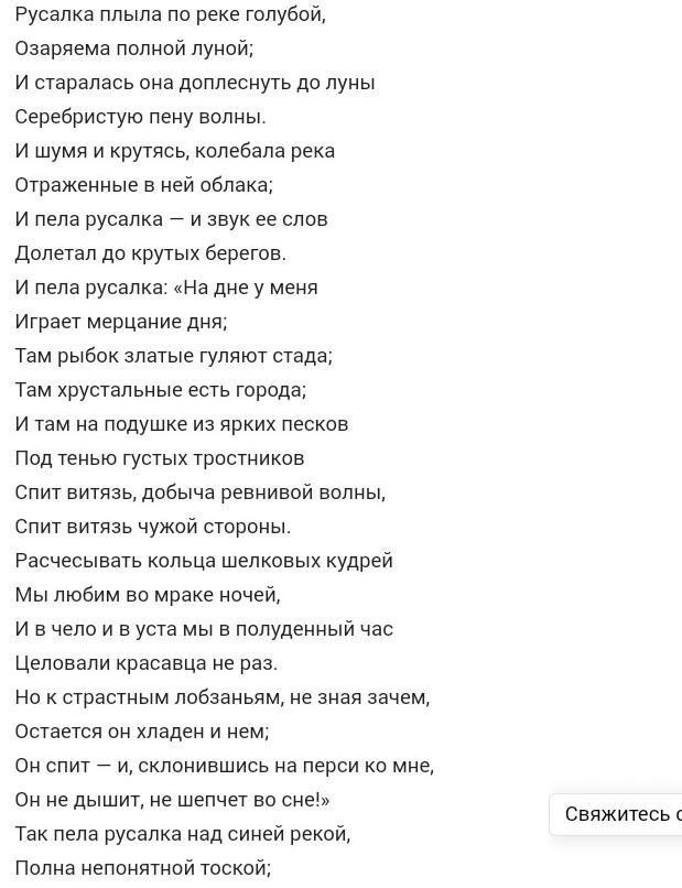 Русалка одиноко страдает без любви, а витязь получает всю любовь русалок, но он потерял свою жизнь. Русалке остаётся плескать серебряные волны, поднимая воду до луны.