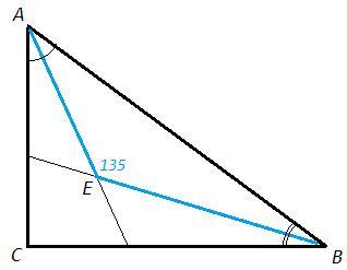 В ТРЕУГОЛЬНИКЕ ABC угол с = 90 градусов. . Биссектрисы углов А и В пересекаются в точке . Е
