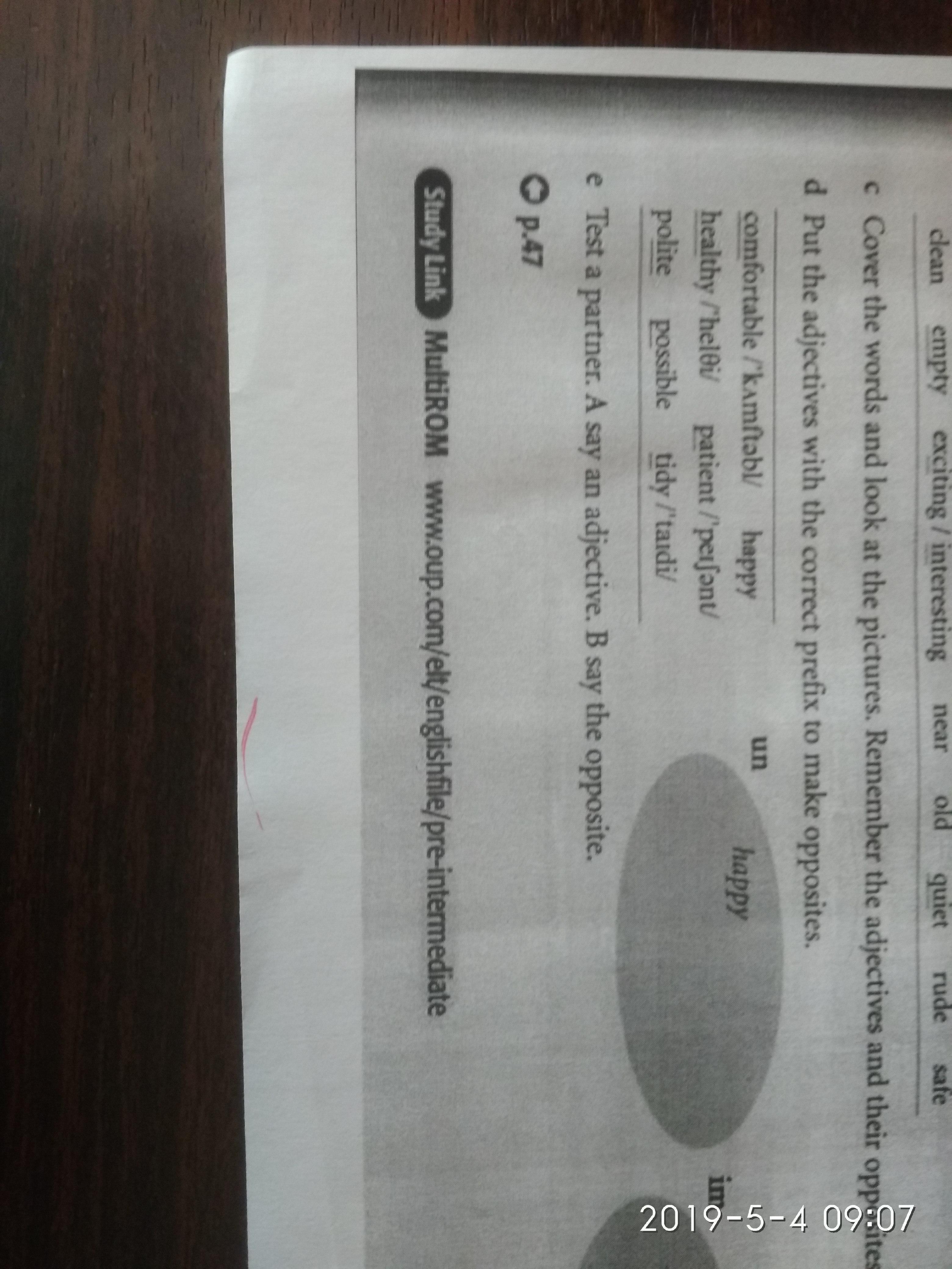 uncomfortable, unhappy, unhealthy, impatient, impolite, impossible, untidy