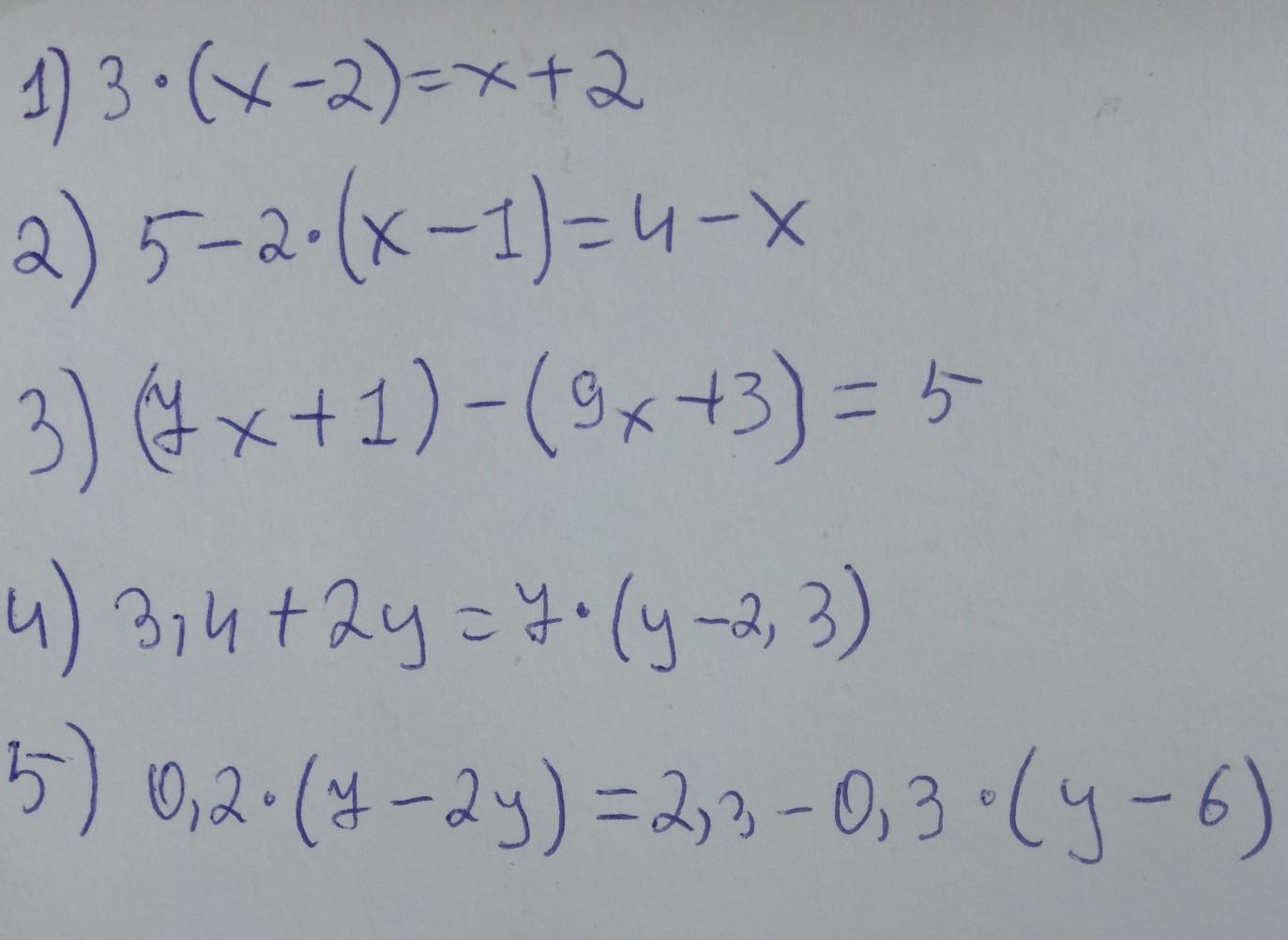1) 3(×-2)=×+2