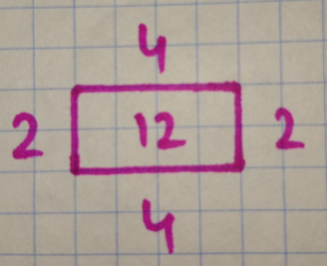 2 стороны по 2см и 2 стороны по 4 см в сумме дают периметр 12см