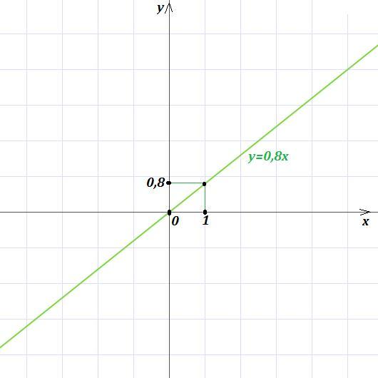 y=0,8x - линейная функция, графиком которой является прямая, проходящая через точки (0; 0) и (1; 0,8), так как