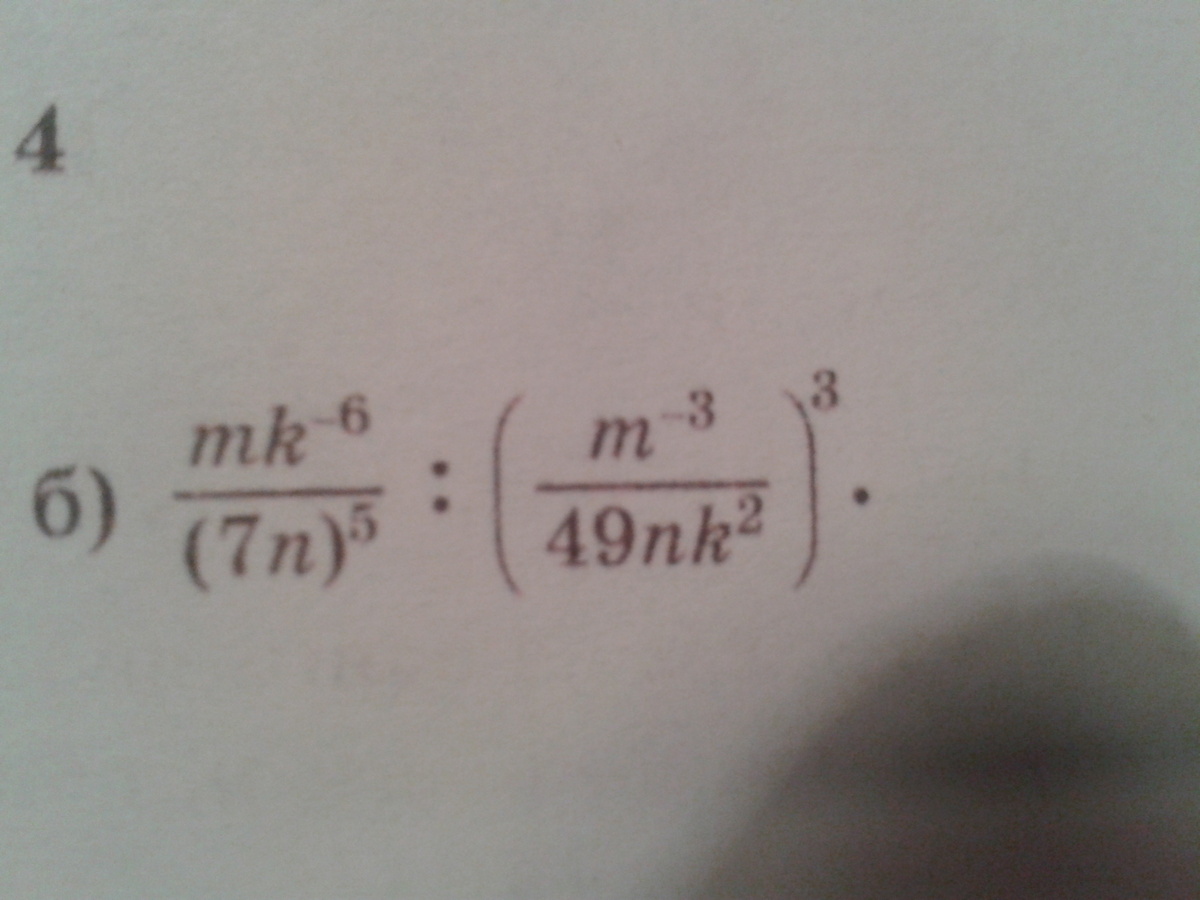 mk^-6 / (7n)^5 : (m^-3 / 49nk^2)^3 = m*117649n^3k^6m^9 / k^6-16807n^5 = 7m^10 / n^2