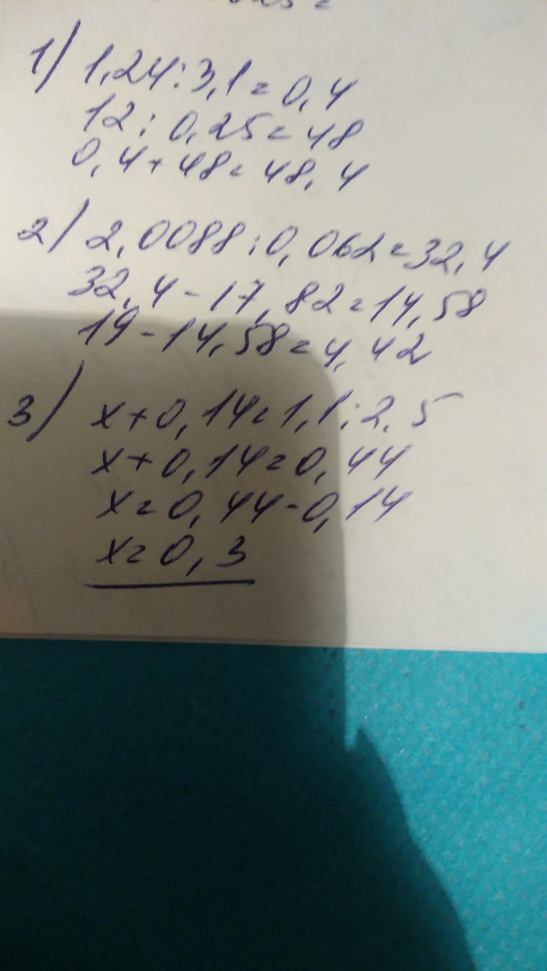 Решите пожайлуста примеры 1,24:3,1+12:0,25=