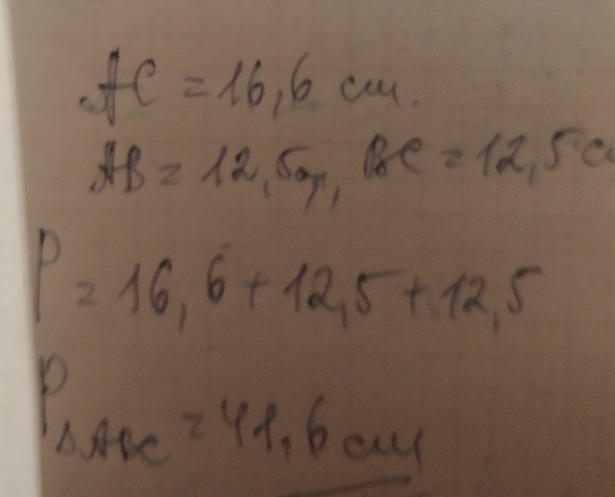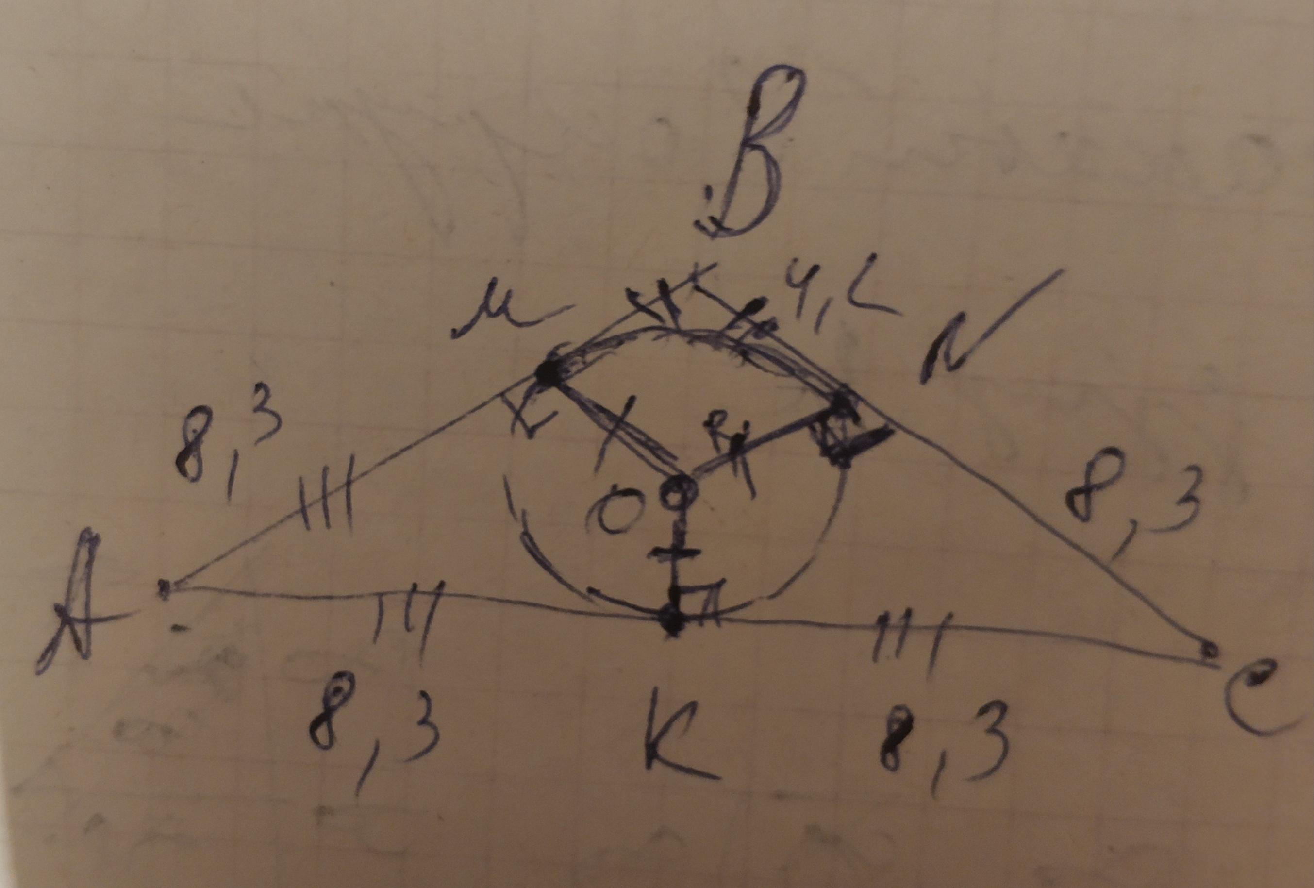 ПОМОГИТЕ ПОЖАЛУЙСТО ЛЮДИ!Точка касания окружности, вписанной в равнобедренный треугольник, делит одну из боковых сторон на отрезки, равные 4,2 см и 8,3 считая от основания .Найдите периметр треугольника