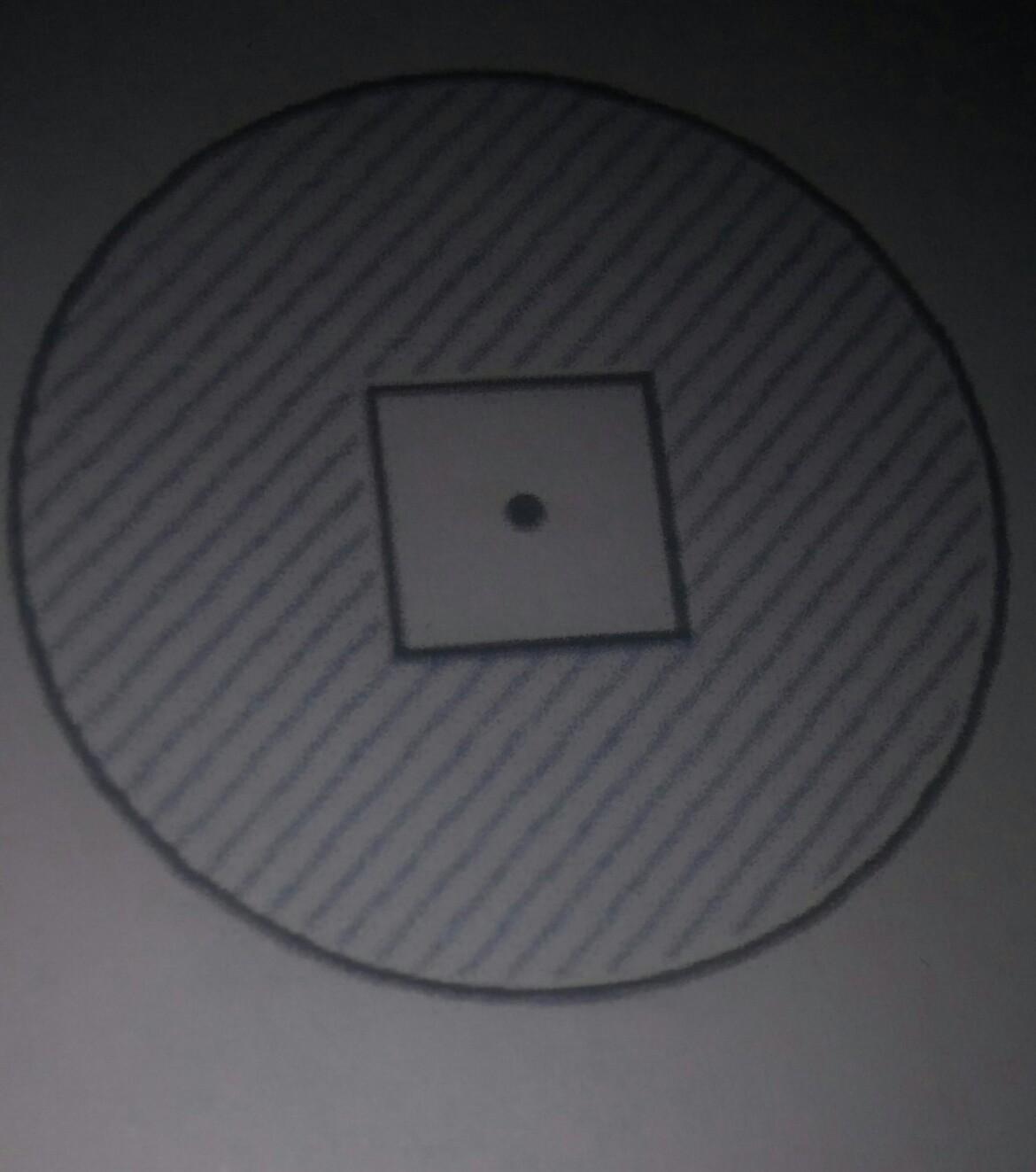 Чтобы найти площадь заштрихованной фигуры, нужно из площади круга вычесть площадь квадрата