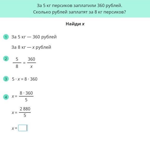 Просто подели в столбик 2880:5=576( в дроби чёрточка между числителем - то,что вверху, и знаменателем,означает действие деления)