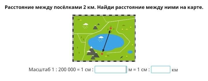 Масштаб 1 : 200 000 = 1 см : 2000 м = 1 см : 2 км.