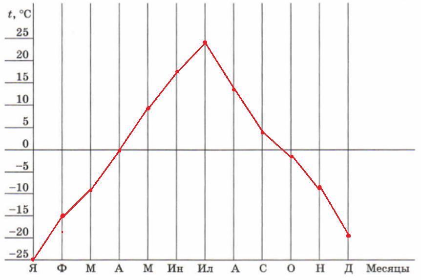 Средняя температура (-24-15-8+8+18+25+12+4-2-10-19):12=-11:12=-0,92=-1°.