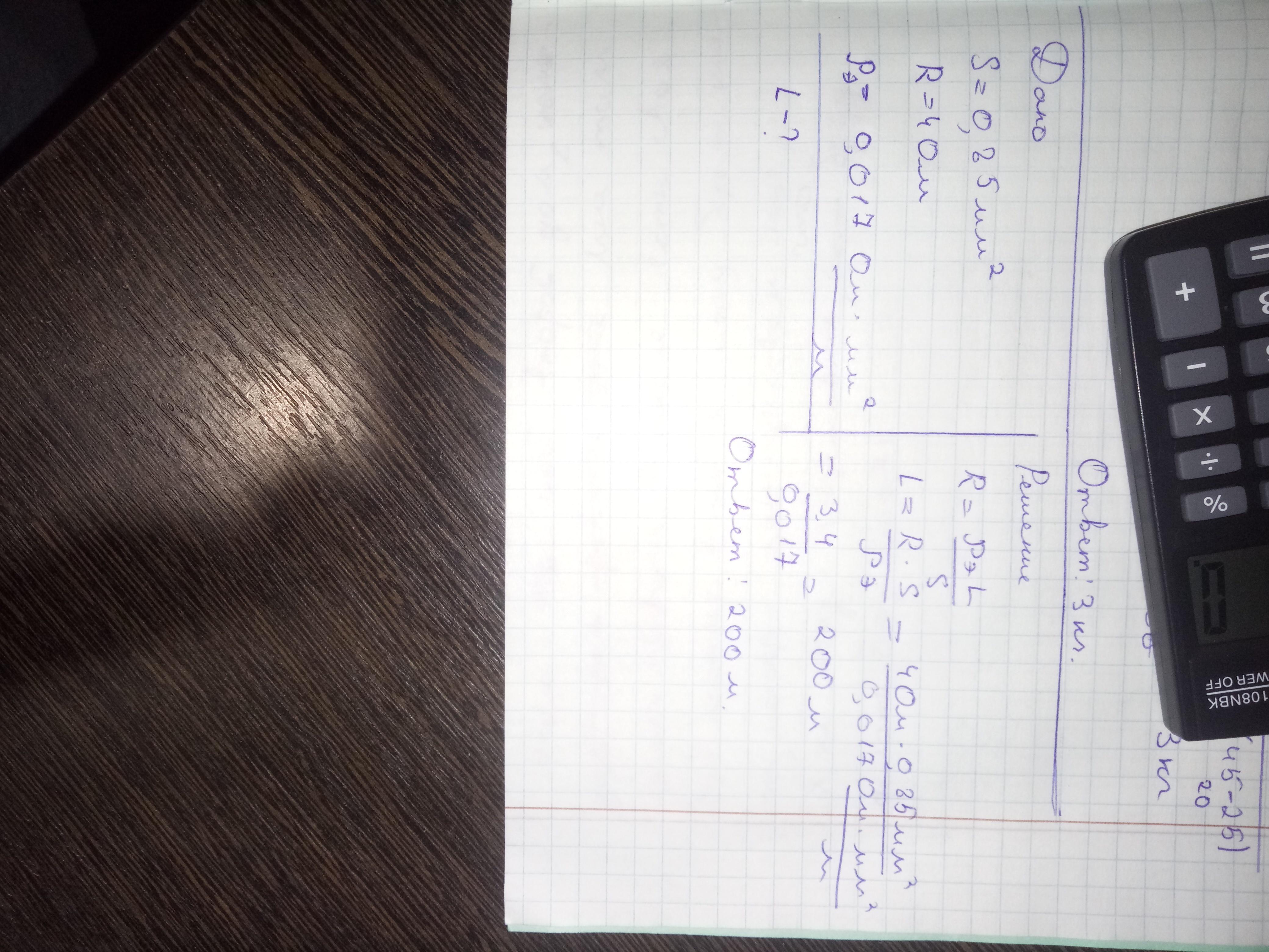 Медный провод с площадью поперечного сечения (S) 0,85 мм2обладает сопротивлением (R) 4 Ом. Определить длину (l) медного провода.