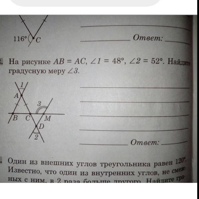 В ΔCDM ∠3 - внешний. Внешний угол треугольника равен сумме не смежных ему углов. Значит: