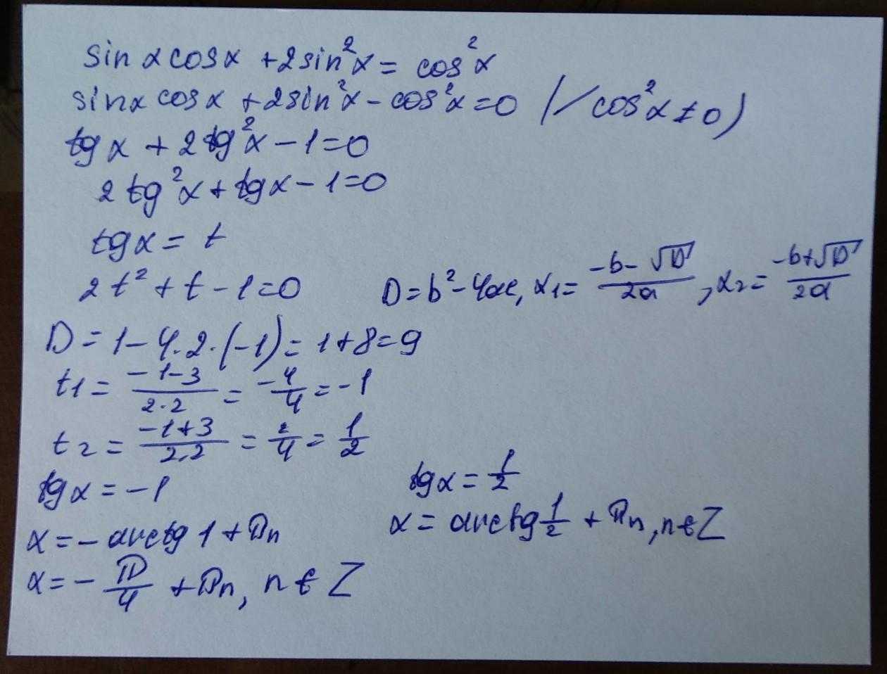 sinx*cosx+2*sin^2 x=cos^2 x