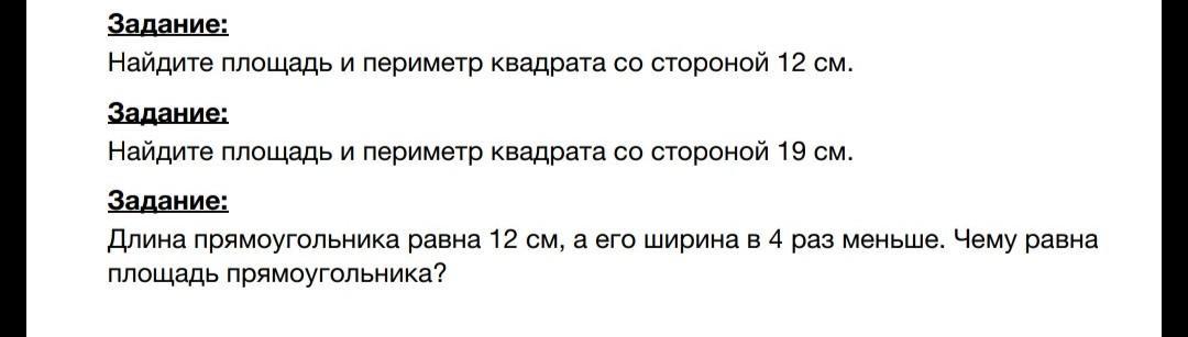 (3) S = a * b = 12 * 3 = 36 ( см² ) - площадь прямоугольника