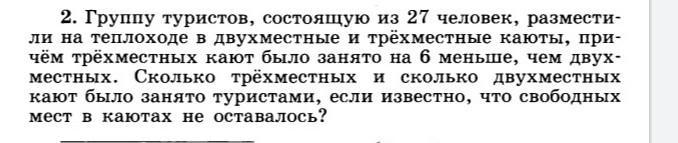 Ответ: 9 двухместных кают и 3 трёхместных кают.