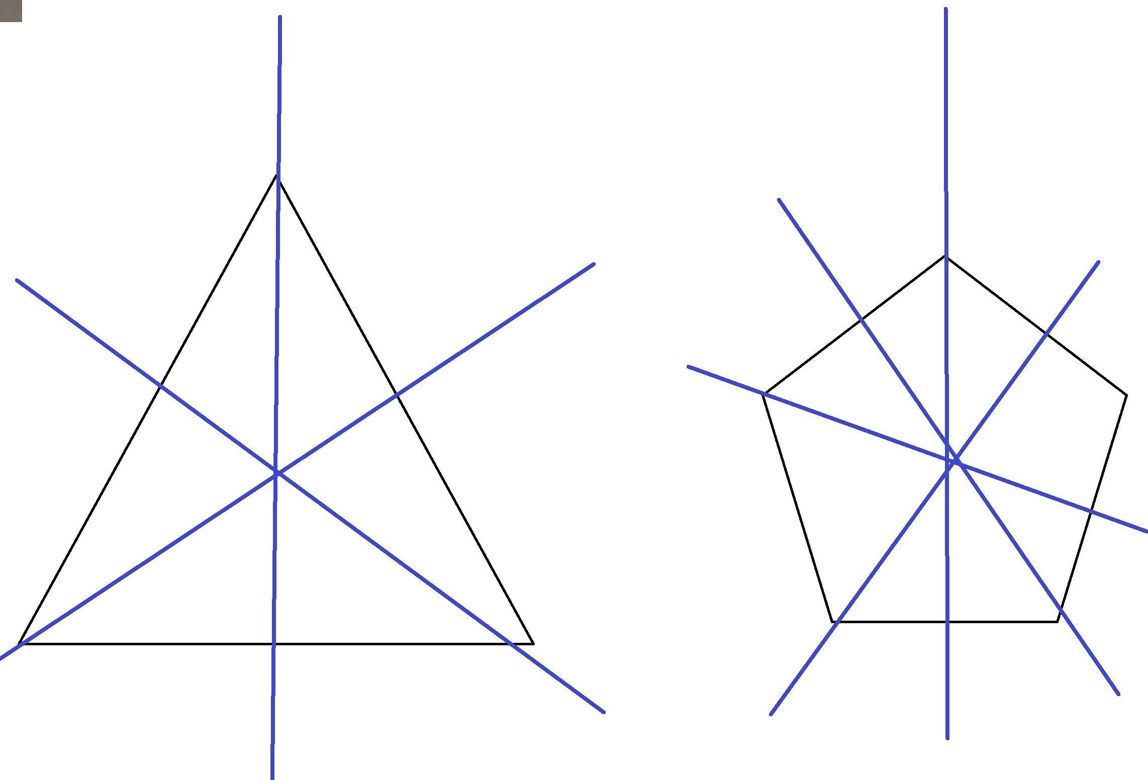у правильного треугольника 3 оси симметрии у правильного пятиугольника 5