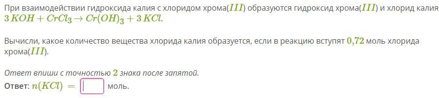 1)При взаимодействии гидроксида калия с хлоридом хрома(III) образуются гидроксид хрома(III) и хлорид калия (рис.1)