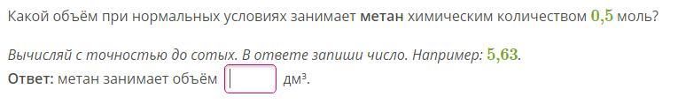 3)Какой объём при нормальных условиях занимает метан химическим количеством 0,5 моль? (рис.3)